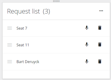 This list shows all participants that requested to speak. Note that this list is only available when the Microphone mode is set to Request. Click the microphone icon