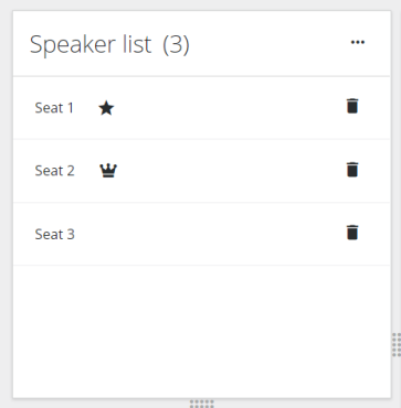 This bloc shows an image of the actual room. Here you can see all seats and their microphone status. Per seat, you can view the following information or perform the following actions:
